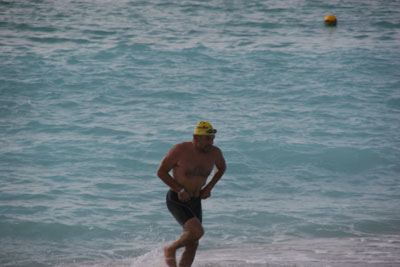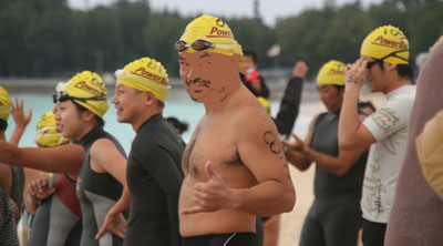 さほど参加人数はなく、スタート混戦はあまりない。ただ、泳ぐにはうねりがきつく目標が定めづらいのは事実だった。前回は伸びる泳ぎを目指したが今回はピッチの泳ぎを試してみる。どこかの水泳教室でならしている風のおばさんに食いついていくことにする。女性だからとなめてはいけない、日頃鍛えている人には全く歯が立たないのだ。