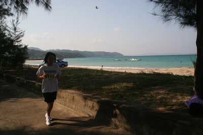 昨日のラフウォーターの疲れはほとんど残っていない11月30日、早朝の宜野湾を真っ暗な中、北上する。生まれて初めてのトライアスロン、しかも高校生の娘もついでに出場、親子で初参加というところだ。周りにトライアスリートなんていないから、ネットで調べたような知識でぶっつけ本番である。