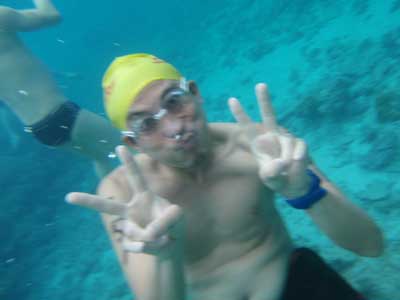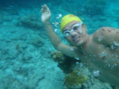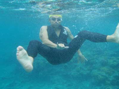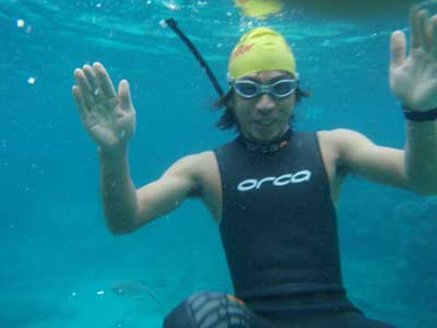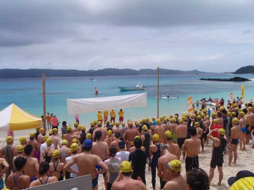 どうせだから、みんな競泳の格好のままフリータイム。普段はダイバーや観光客が多いはずのビーチに、スイマーがぞろぞろ泳ぐ姿は異様でもあった。