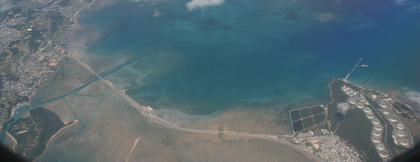 奄美ー沖縄を結ぶRAC便から見る海中道路