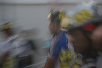したたか打った尻は痛いが、気を取り直しバイクにまたがる。どこも壊れてなさそうだし、とにかく前へ進む。だいぶ遅れたようだが、可能な限りペースを上げて前方のバイクを抜いていく。最初の左カーブもなんとかこなし進んでいくと、だいたい似たようなペースの車群で落ち着く。先に見える集団に自力でこいでも追いつかないところに落ち着いてしまった。