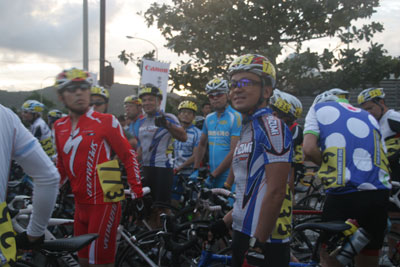 スタートの混雑が一段落すると、周囲も見えるようになり沿道の応援にも気が向くようになった。応援を力に換えて踏んでいく。心配していた上り坂も実際はたいしたことなかった。いつも奄美で走っているからかな・・・決して速いわけではありませんが・・・
