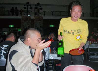 プリシアにチェックインしたらすぐに、バスに乗ってコース下見だったけど、窓は曇ってるし、あまり意味はなかった。その後前夜祭会場へ移動。この大会はこの前夜祭にピークがあるとの前情報だったので、飲み過ぎ警報を大きく発令して会場へ臨んだ。