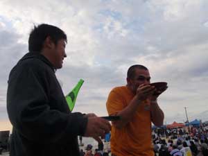 聞くところによると今年からは食べ放題ではなくなり、チケット制に変わったらしい。初参加のチャーリーはあまり感じなかったが、リピーターには不満のようだった。そうこうしているうちに出し物は進んでいき、いよいよ噂の献奉が始まった。