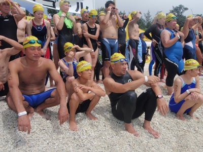 6月19日 朝から風が強く雲は多いが雨はなさそうである。順調に5kmはスタートしているものと思われた。ゆっくりと支度をして9時半ごろ会場入り。5kmのトップが56分台で泳いでいるのを聞いて驚く。ありえんだろ。