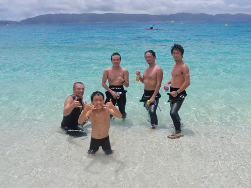 第一泳者charlieは、とりあえず頑張った。潮にも流され苦戦したがビリは避けて、第二泳者新エースのまー君に繋ぐ。潮をじっくりと観察したサーファーまー君は結構いい感じで泳いでいった。嘉比島は美しく昔のままのように見えたが、少し潜ってみると珊瑚のダメージはかなりありそうだった。