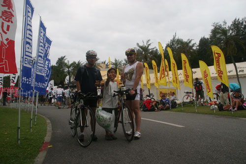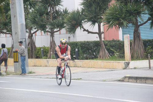 城辺あたりで私設応援団に遭遇。すかさずバイクから降りて痛み出した右足のテーピングをやり直す。この間にはにおがパスして行ったようだった。この距離で足の痛みが出ているのだから無理は禁物とペースを更に落として長丁場を意識するようにした。東平安名崎までは向かい風でしんどい行程だった。七又あたりではすっかりパワーダウンしており、課題のインギャーの坂もえっちらおっちら上っていった。最後のあたりで応援のおっさんが後ろから押してくれたりしてちょっと嬉しかった。この辺の順位の人はまぁご愛敬ということですな。