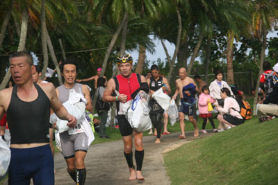 1992年の宮古島トライアスロンにはボランティアとして参加した記憶がある。あの頃はトライアスロンなんて興味もなかったし、そんな長い距離を泳いだり走ったりするなんてバカバカしいと本気で思っていたので、せっかくの日曜日をボランティアでつぶされるのが腹立たしかった記憶がある。それでも、死力を尽くしてゴールしてくる選手を見ていて、こんな世界もあるんだなぁとぼんやり思っていた。それがいつしか年月が過ぎ、まさか自分が選手として宮古島に戻ってくるなんて、人間なんてわからないものである。そしてボランティアの重要性を思い知ることになるのである。
