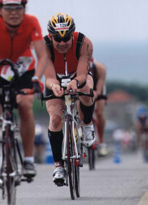 バッグのところに行って着替えようとすると、着替えテントに行けと係員が叫んでいる。仕方なく着替えテント付近でハートレートモニターをつけようとするがこれがまたバカになっているのか何度やってもはずれるのである。本当に本番は上手くいかないものである。バイクラックのところでモニターを応援団に渡し、おしっこに並ぶはにおに挨拶して先にバイクの旅に出る。