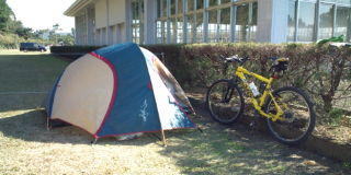 着いた時間が早いせいか、さほど混んでるイメージはなかった。前もって下調べしていたので駐車場奥にテン場を決める。暖かい日差しの中テントを張る。しばらく使ってなかった道具のせいでちょっと手間取ったが、なんとか完成。そうこうしているうちに次第に周囲にもテントを張る連中が出てきた。結果から言えば車で来るキャンパーはここがいいだろうが、自転車で来るキャンパーはもっといい適地がたくさんある。ここはちょっとやかましすぎて夜寝るのに苦労する。