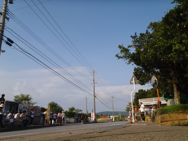 7月24日 一週間前に台風6号のビッグスウェルで左ふくらはぎを強打して浮腫パンパンなまま会場にやってきました。天候は快晴。暑い日になりそう。とりあえず、Jrとコースを試走してみた。ゆっくり走るならさほど痛みは気にならないので出場を決意。受付してローラーをセットする。