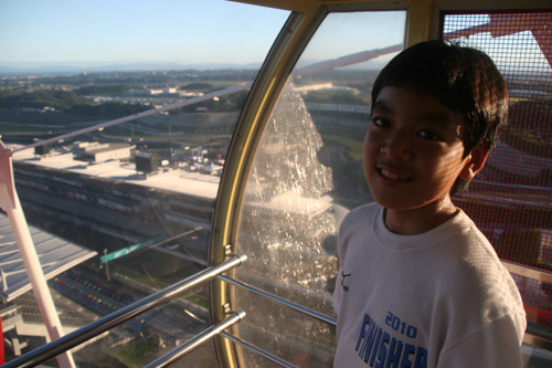 早速探検開始。まずは明日走るコースをチェックしたいので、公園内をサーキットに向かっていると、おあつらえ向き観覧車発見。