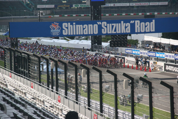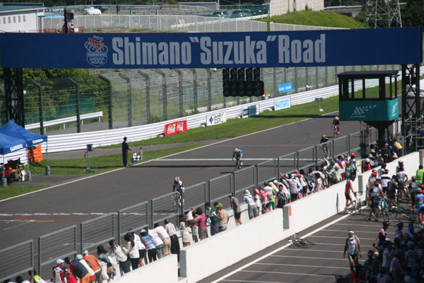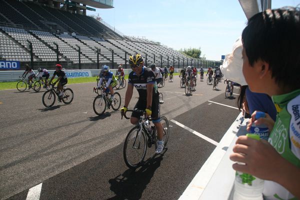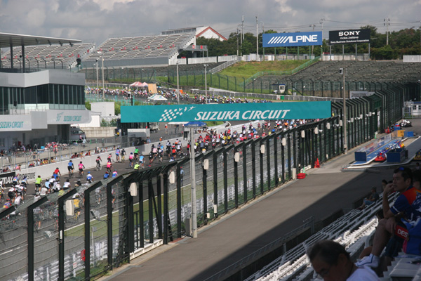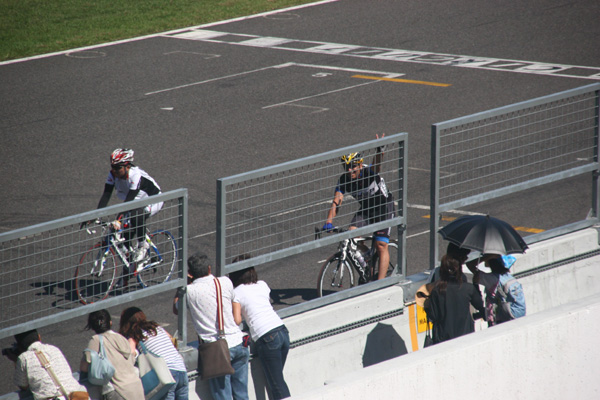 少し遅れた分は西ストレートからスプーンカーブにかけて重さを生かした走りで取り戻す。なにぶん人が多いので、怒号が飛ぶのは当たり前だ。落車の危機は常にある。ヘアピンなどは十分注意が必要なうえに立ち上がりの加速でちぎられやすいので要注意なのである。サイクルマラソンは西コース周回なのでダンロップカーブに入る前にシケインに戻る感じである。charlie的には頑張ったのだが、15分ごろには中切れにより後方に沈んでいった。もはや追いつく術はなく足のそろうグループで淡々と周回をこなすのみだった。最後は第一コーナーを回ってメインストレートへ。