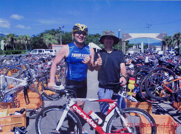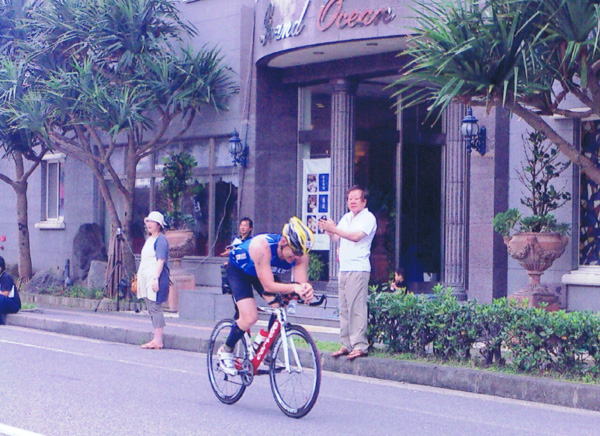 そしてバイク、改めて徳之島のコースがアップダウンの多いキツイ設定だと思い知らされる。平坦は速いし、下りでは70km/hオーバーをマークする。しかし、登りは散々抜かれまくる。後半のエイドで何かを受け取るときにスリップしてほとんど落車。チェーンが外れただけで大事に至らず、ホッとする。全体的に踏まず回すことに専念。