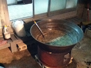 こんな巨大鍋でモズク雑炊を作ってくれる