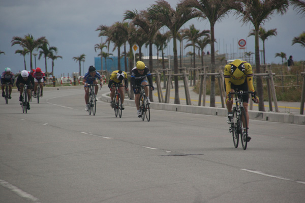2,3周目から飛び出そうとしたキッズメンバーがいたので、行けるかと思って飛び出してついてみた。もう一人来て、3人で回すことになったのだが、これがきついのなんのって、着いていくのに必死で引ける状態じゃなかった。さらに数人が着いてきたので、あっさり先行してもらい第2集団へ落ち着く。これで終わりかな〜〜と思っていたら、先頭集団の速度が上がらず、再び吸収され一つの集団になる。これで落ち着いたのが9週目あたりだったか。