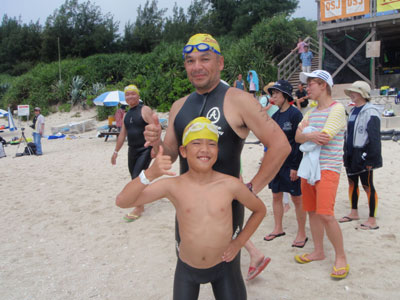 泳力は十分と思われるのだが、大人に混じってのバトルだけはさすがに心配なので、スタートからしばらくは後方でガードすることで作戦会議終了。