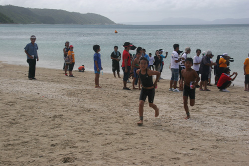 次に確認した時には、石垣島から来たランの凄く速い3年生アスリートキッズにかわされていた。宮古島ジュニアトライアスロンの時と同じ展開だ。後続の選手にも追いあげられながら、それでもなんとか逃げ切る。