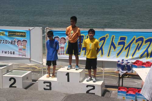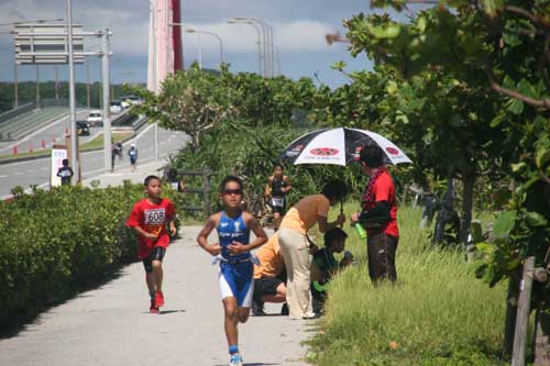 中学生の次、10時スタート。スイム150m、バイク8km、ラン2km.